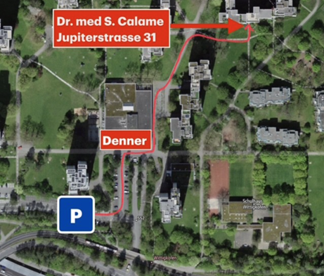 Ausfahrt Ostring bis Burgernziel fahren, dann nach links über die Muristrasse und die Worbstrasse in die Jupiterstrasse Richtung Einkaufszentrum abbiegen und dort parkieren, von dort aus weiter zu Fuss zur Jupiterstrasse 31.